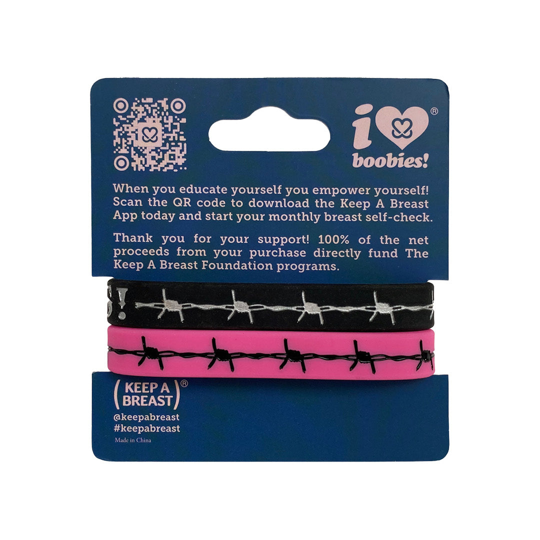 Instantly iconic. This barbed-wire bracelet pack from Keep A Breast Foundation's western collection is made for the cowgirl and cowboys with soft hearts and strong wills. Perfect for NFR outfits, rodeo weekends, or any day you want a little western energy. Every purchase supports early detection and breast cancer prevention.
